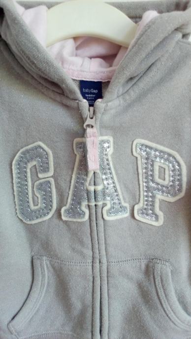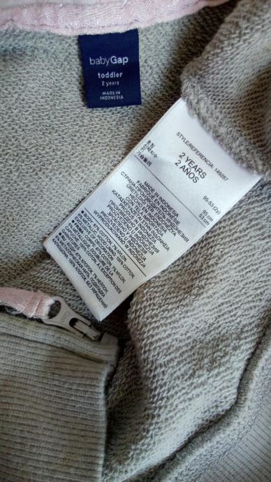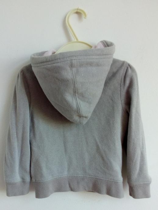 GAP svečana jakna sa kapuljačom u stanju kao nova iz trgovine, mi smo je nosili do 4 god., jako efektna posebno za nadolazeće blagdane jer je u cjelosti svjetlucava sa srebrnim u materijalu, deklararirana veličina 2godine a dimenzije su: duljina mjereno po sredini leđa 32cm, od vanjskog vrha ramena do dolje 35cm, od pazuha do dolje 21cm, duljina rukava vanjska strana 33cm unutarnja strana 23cm, širina u ramenima 26cm, od pazuha do pazuha 30cm i na dnu 27cm.