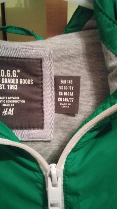 H&M jakna za dječake, veličina 10-11 godina, Prelijepe zelene boje, sa džepovima i kapuljačom, za prijelazno vrijeme! Izvana je nepropusan materijal, a unutra je pamuk...