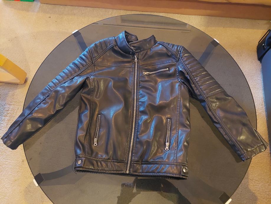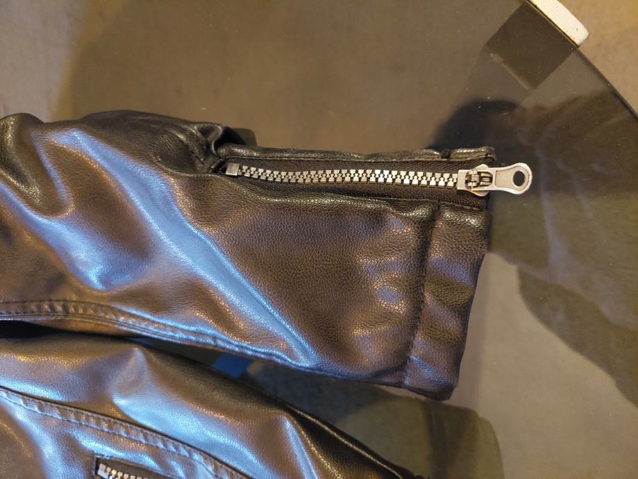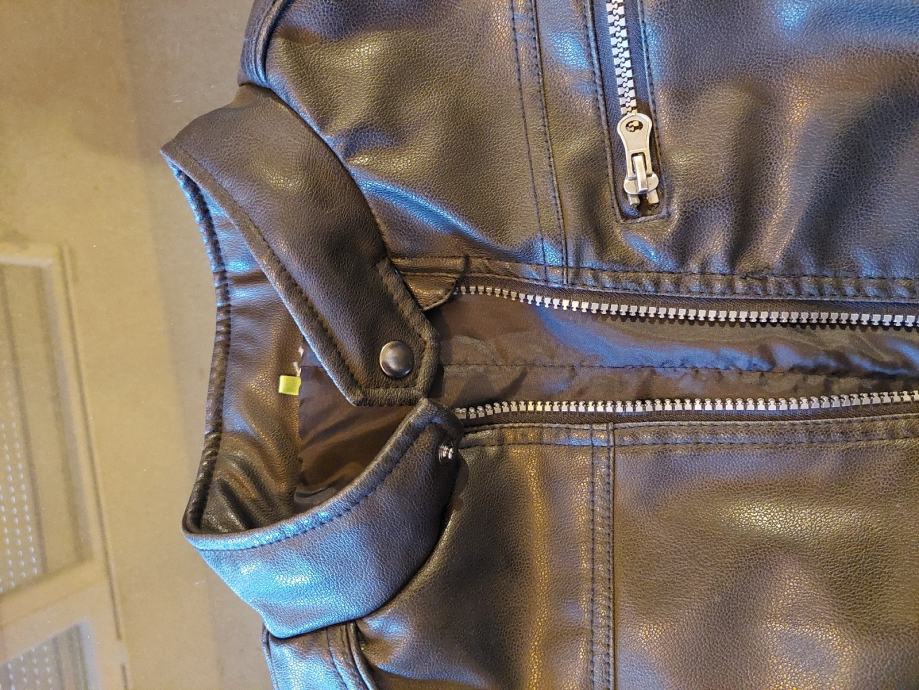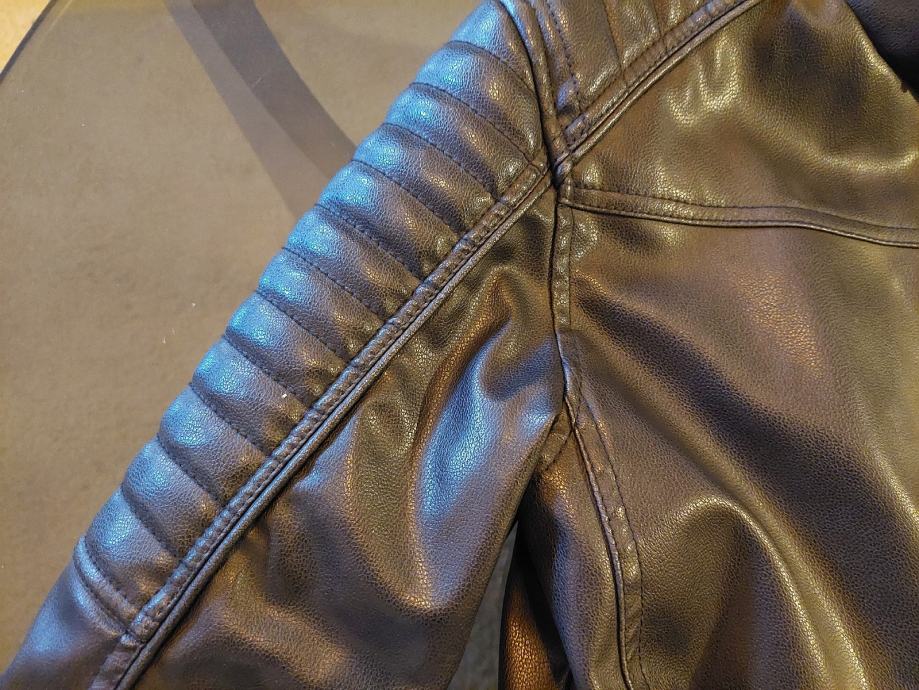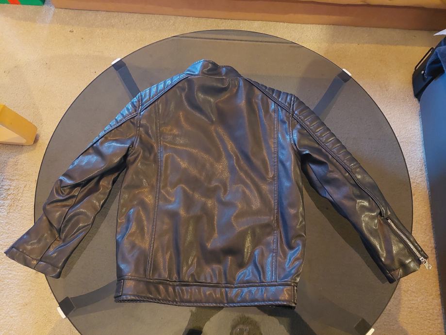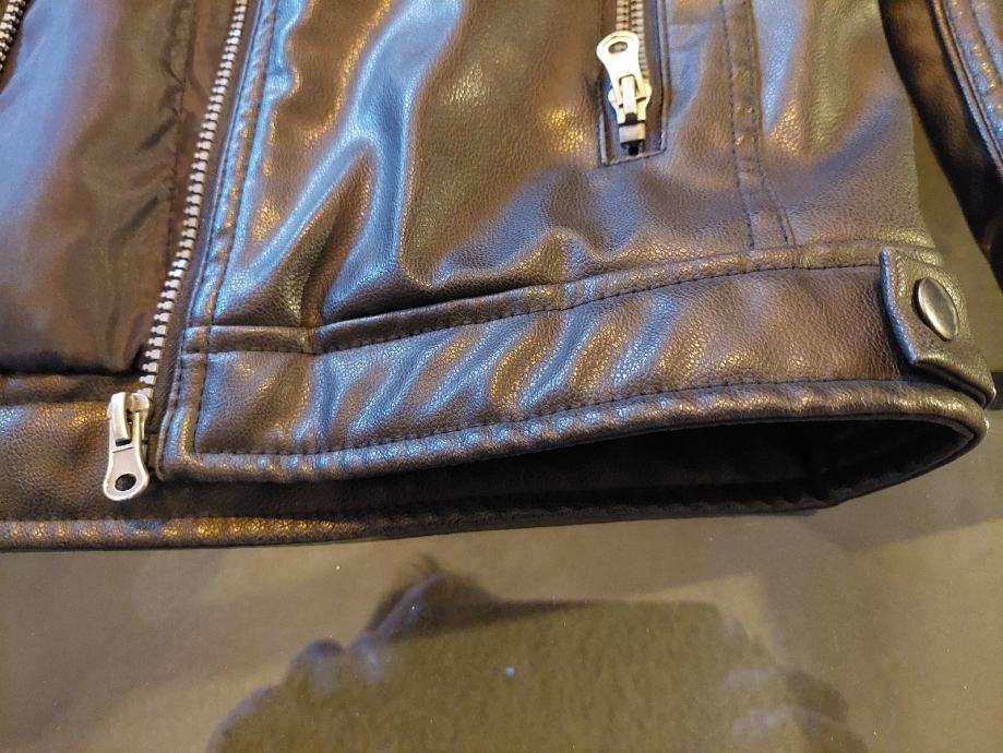 Jakna vrlo kvalitetna imitacija kože, crne boje, nigdje oštećena niti izgrebana, postava odlična za djete od 12- 14god. Sve ovisi o građi djeteta.Skaj od koje je napravljena je odličan, ne trusi se i ne raspada, doslovno izgleda kao prava koža. Nije puno nošena, djete ju je preraslo...