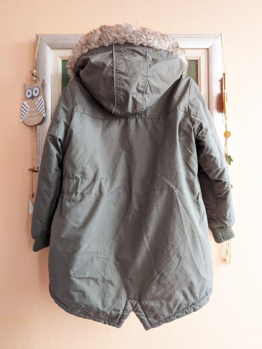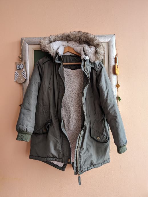 Jaknica br. 122 za djevojčice, tamnozelene (maslinasto zelene) boje, sa dva džepa naprijed, kopčanje na cif, ima kapuljaču koja se može skinuti, suženi rukavi da je toplije za rukice, topla, mekana i udobna, nošena, stanje vidljivo na slikama.