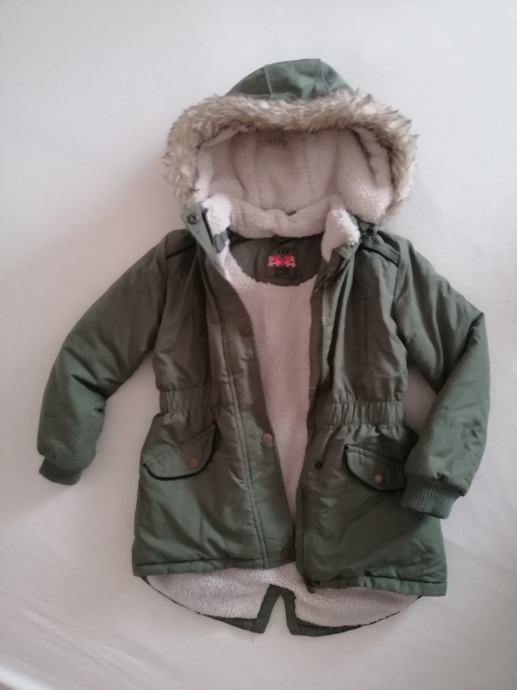 Topla jakna za djevojčice vel. 122, maslinasto zelena (na slici izgleda kao da je izblijedila boja ali nije)