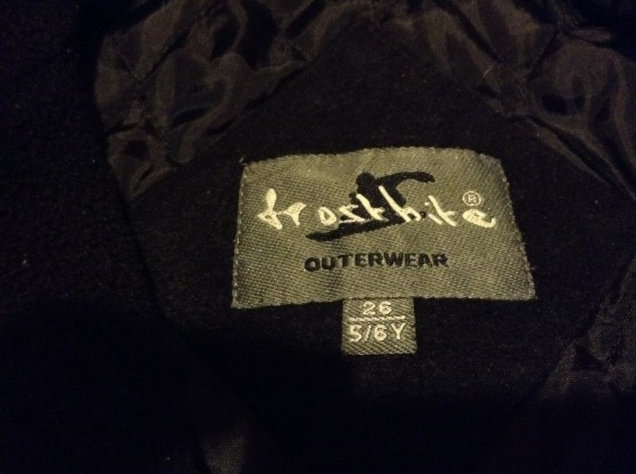 Zimska jakna Frostbite, crne boje, veličina 26, za dijete od 6 do 7 godina, podstava. Kopčanje na cif.