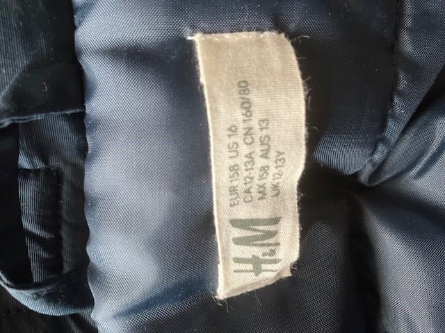 Prodajem nekorištenu novu jaknu H&M vel. 158. Lijepe tamno plave boje, na fotografijama se dobro ne vidi prava boja. Višak je jer je bila kupljena unaprijed i sada nam ipak ne treba. Cijena 18 eura. Preuzimanje kod Av. Malla u N. Zg. Kontaktirati me isključivo na mob. 091 497 23 01.