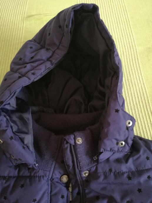 Plave boje ima po sebi plave zvjezdice,ima kapuljaču koja se skida, kopčanje na cif i na gumbe, više informacija na upit
