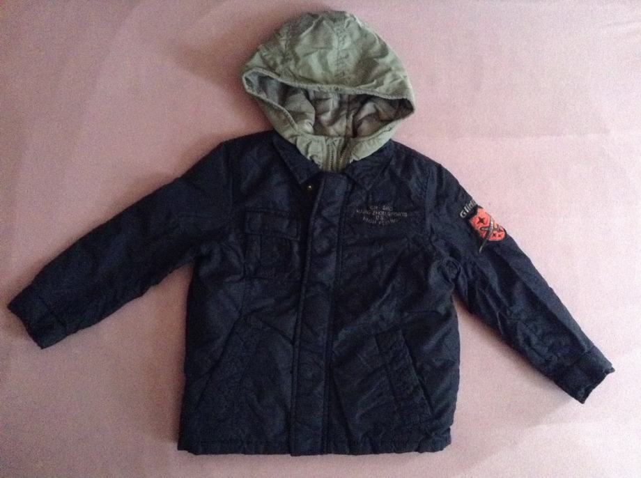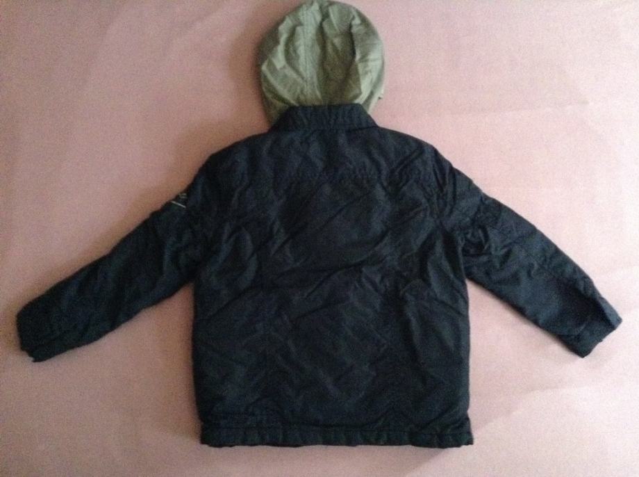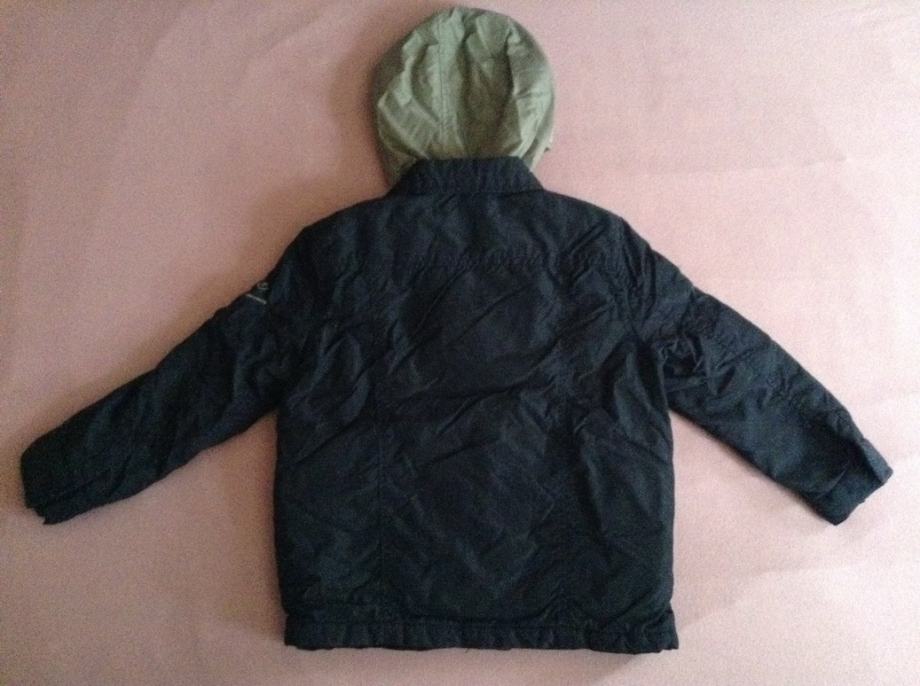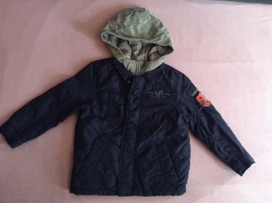 Jakna Zara Kids, sivo plava kombinacija, 2 u 1, sa kapuljačom, veličina 110, za dijete 4 do 5 godina, podstavljena. Kopčanje na cif i drukere.