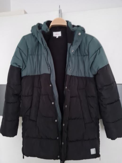 S.Oliver kvalitetna topla zimska jakna, veličina L - 164, toplo punjenje, podstavljena flisom iznutra, kao i kapuljača, džepovi i oko rukava, dvostruko kopčanje (gumbi i zip). Kapuljača se ne skida, džepovi se kopčaju gumbom.