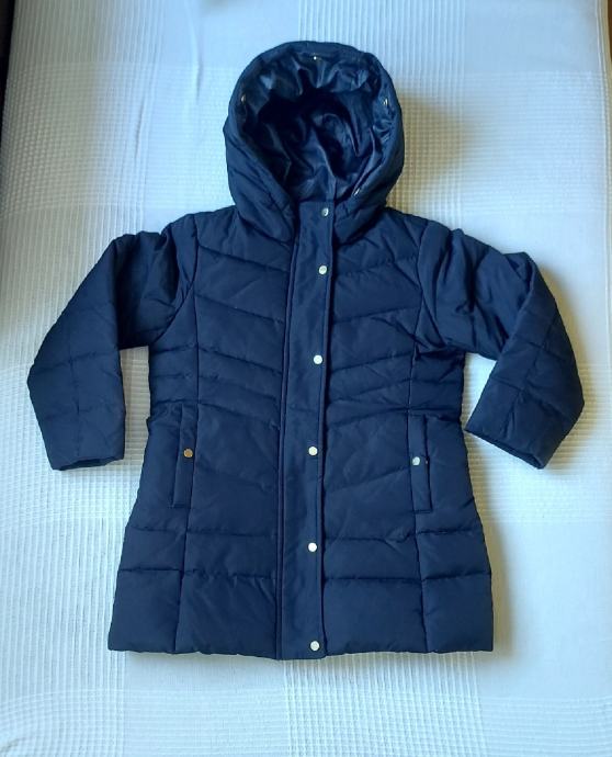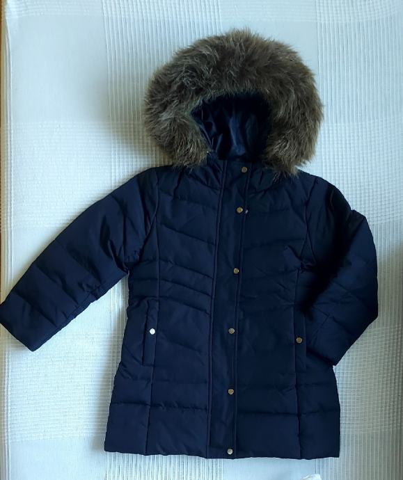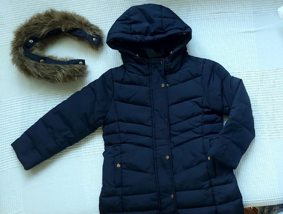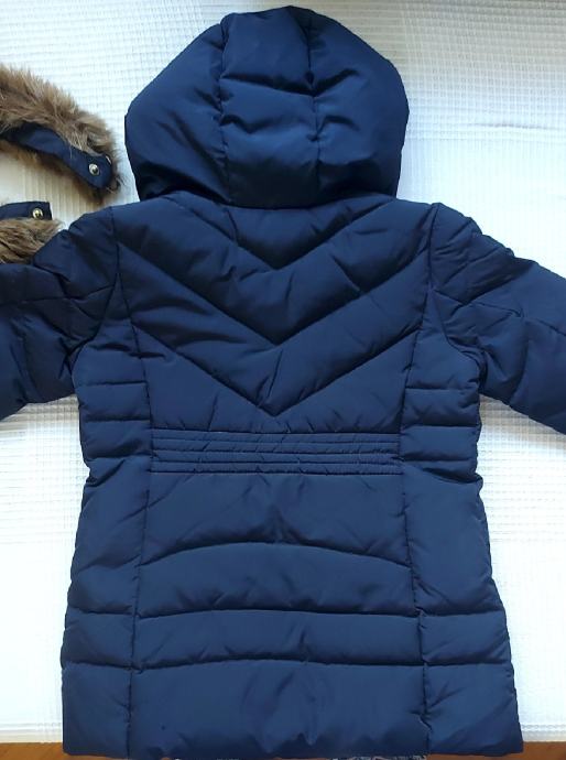 Predivna zimska jakna za djevojčice 4-6 godina,110cm visine.Punjenje guščjim perjem,nije jako debela niti za veliki minus.Ima kapuljaču sa malim povišenjem na vratu kada se zakopča.Na kapuljaci je umjetno krzno koje se skida drukerima. Jakna se kopča patentnim zatvaračem i drukerima. Dva džepa sa vanjske strane. Dužina jaknice 53cm,obujam ispod pazuha 80cm,obujam na dnu 88cm.duzina rukava 40cm.Jakna u odličnom stanju,bez oštećenja.zvati 0996623813