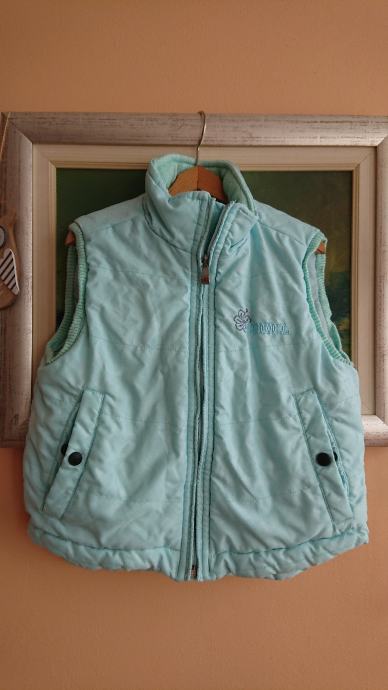 Prsluk 116 za curice, dužina cca 43cm, O'Neill marka, pretežno svijetlo plave boje, sa dva džepa naprijed, kopčanje na cif, ima kapuljaču koja se može spremiti (zakopča se pomoću čička) - molim vidjeti zadnju sliku.