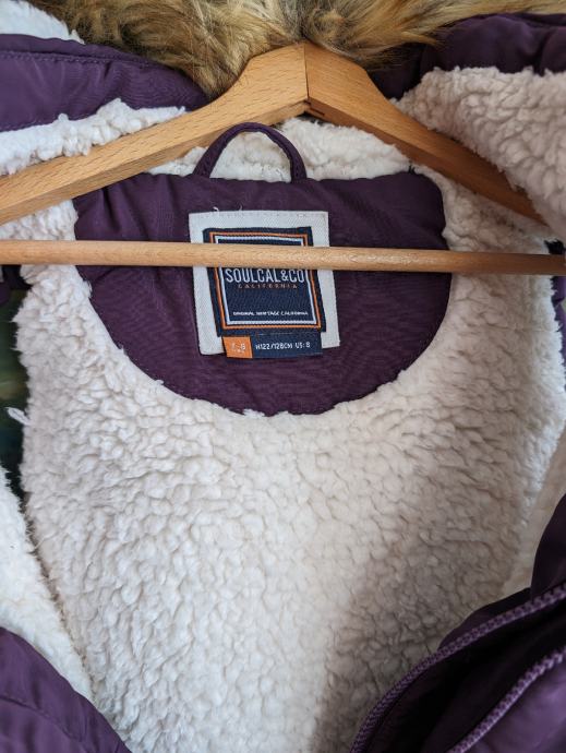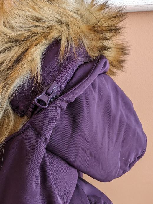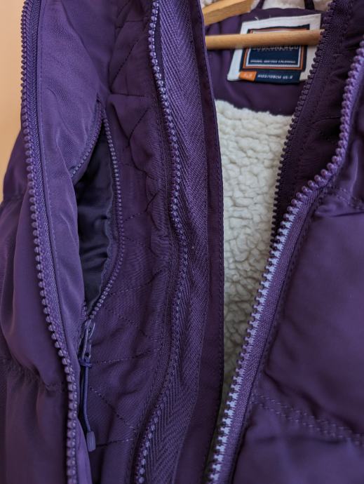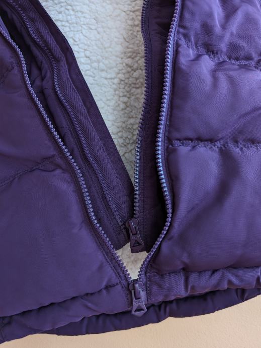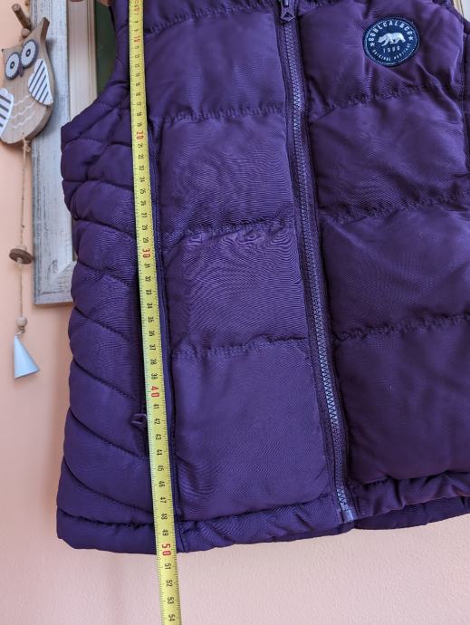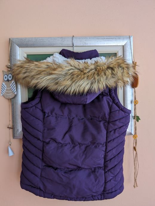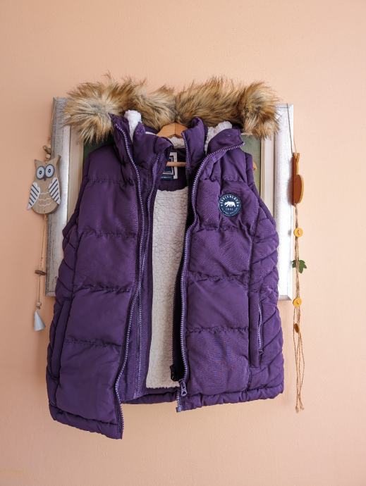 Prsluk za djevojčice br. 122 128, jako topal i udoban, deblji, pretežno ljubičaste boje.