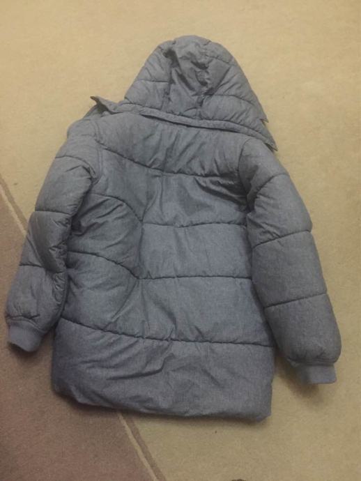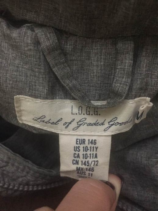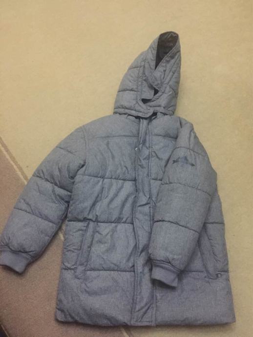 Lijepa jakna nošena jednu zimu, H&M, dobro očuvana, jednostavna, sa dva džepa s prednje strane, jedan unutarnji, kapuljača koja se skida, veličina 146, za 10-11 godina, duljina leđa 165 cm, rukav 49 cm, ramena 45 cm, ispod ruku 51 cm.