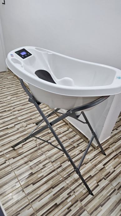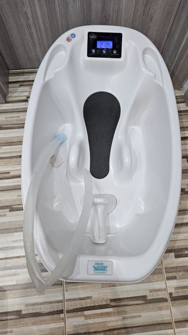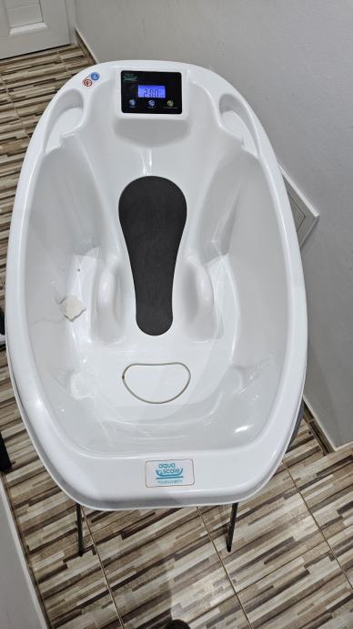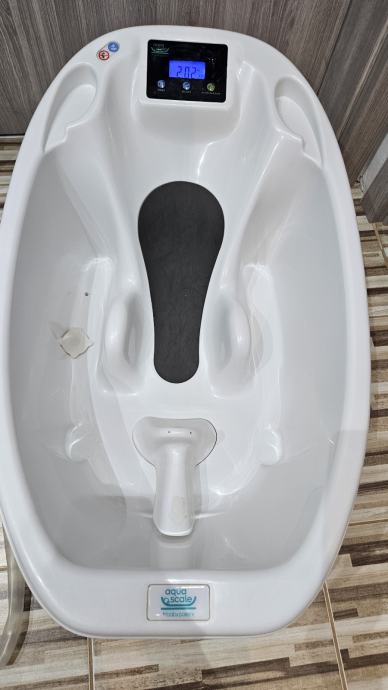 AquaScale kadica za kupanje s vagom i termometrom s nastavkom za male bebe koji se može maknuti.