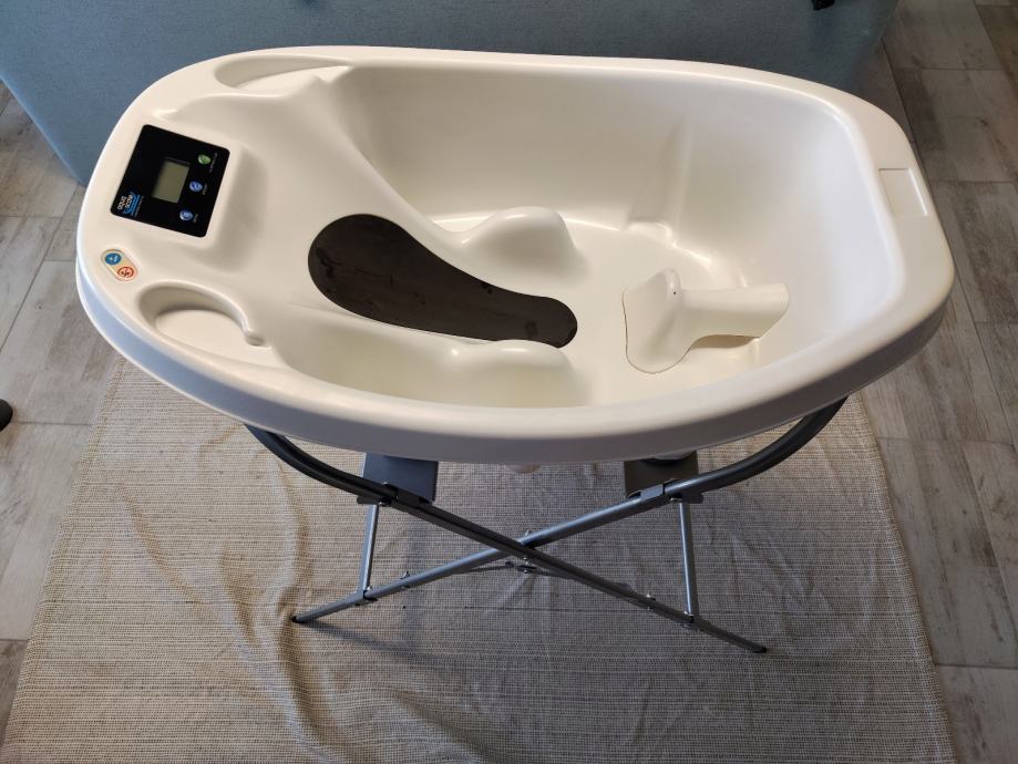 Prodajem očuvanu, ispravnu Aquascale kadicu za kupanje beba, s prikazom težine i temperature vode. Kadica dolazi s praktičnim stalkom koji se lako sklapa i posprema.