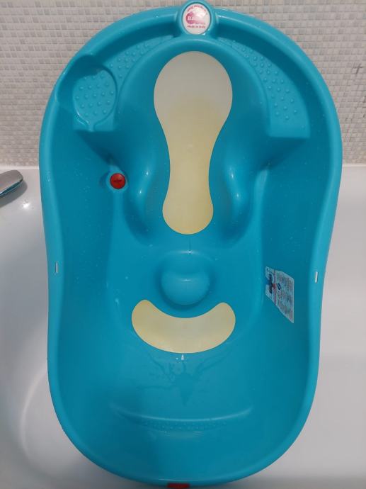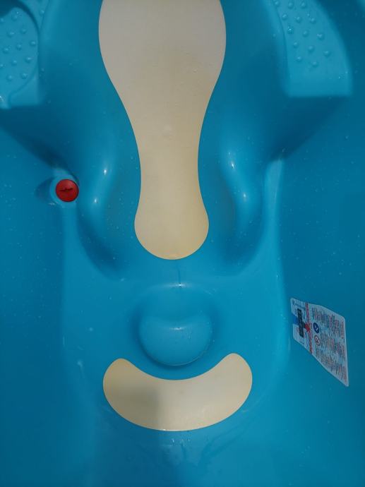 Korištena, ali očuvana i uredna kadica. Ima čep za otpuštanje vode. Anatomska, drži bebu na mjestu, s povišenim uzglavljem, protuklizna. Protuklizni bijeli dio je malo požutio. Nije prljavo, već od korištenja otopine permanganata. Moguća primopredaja u Zagrebu ili u Jaski.