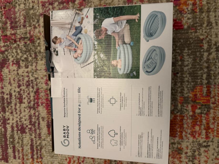 Babymoov kadica raste s djetetom. Moze se koristiti za novorođence. Ima podesivi naslon za bebu koja ne sjedi koji se može kasnije maknuti. Može biti i bazen.