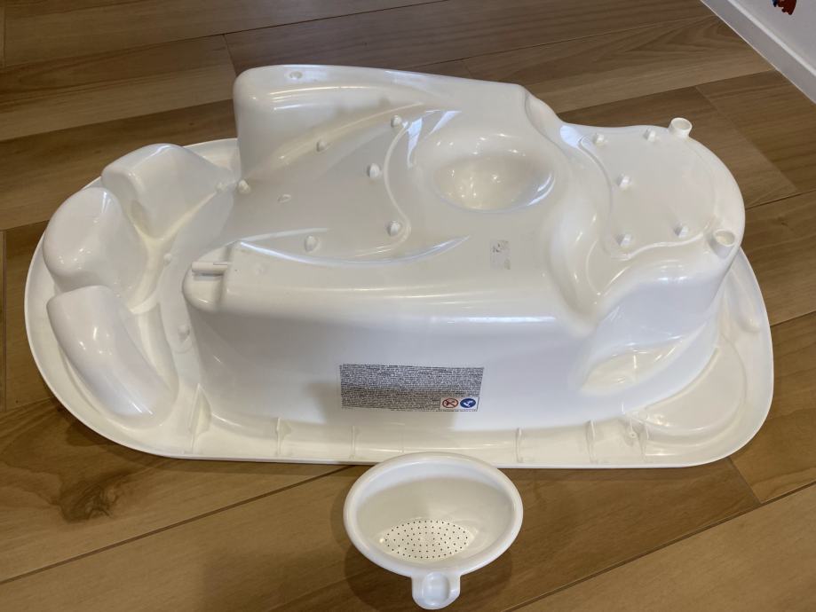 Uz kadicu dolazi i mala posudica s rupicama na dnu za polijevanje bebe. Ergonomski oblik.