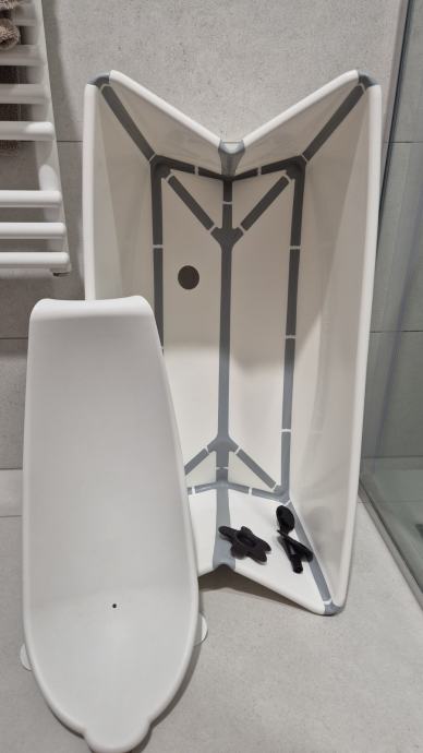 Korištena, ali solidno očuvana kadica. Redovito dezinficirana. Uključen nastavak za novorođenče i stalak.