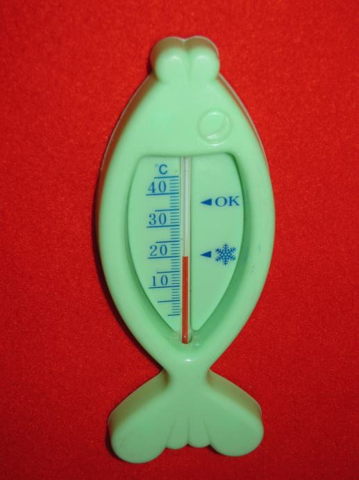 Plutajući u kadici termometar za tempiranje željene temperature vode.
