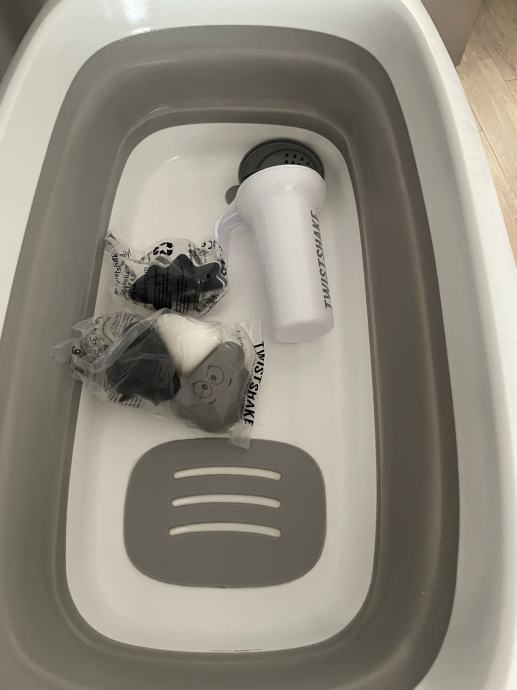 Tragovi korištenja se vide jedino u spremniku gdje su se nalazili gelovi za tuširanje (vidljivo na slici).