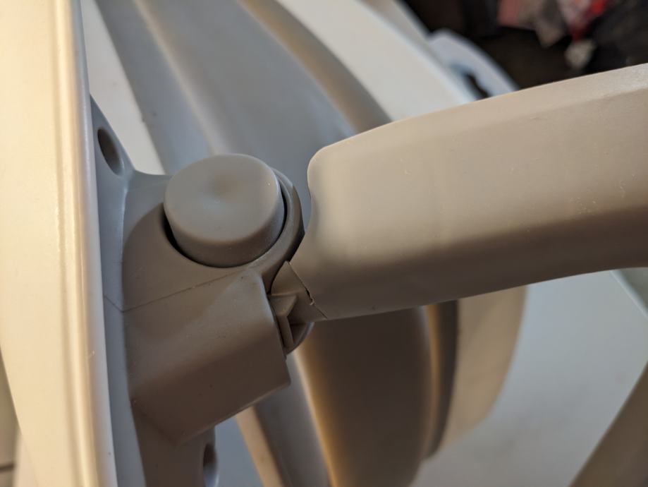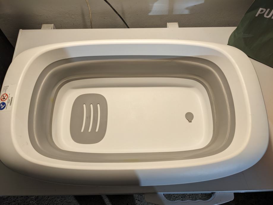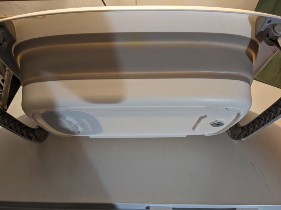 Jedna strana donje nogice na kadi je napuknuta, kao što se vidi na slici, ali korištenje kadice je bezopasno unatoč tome.