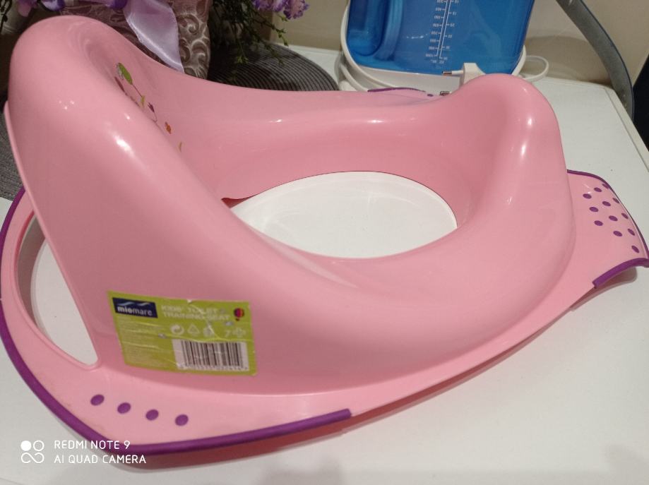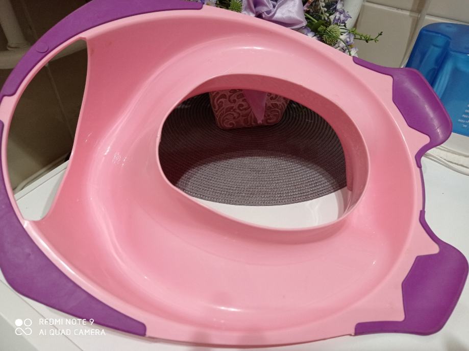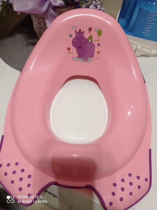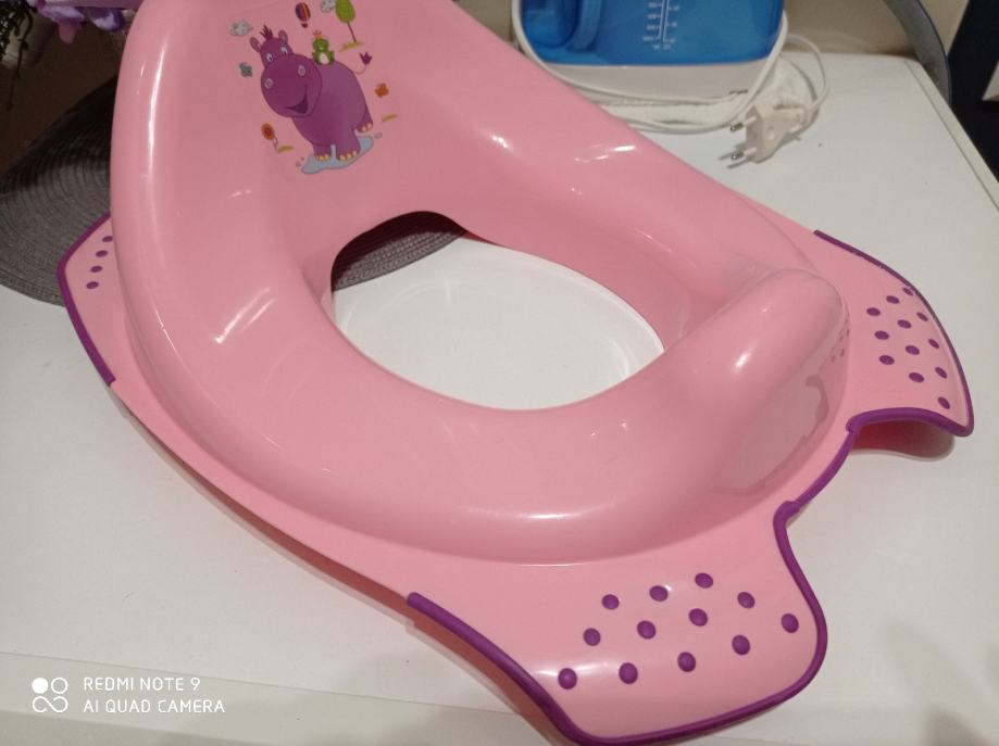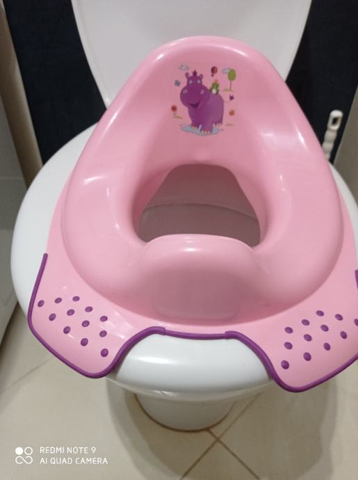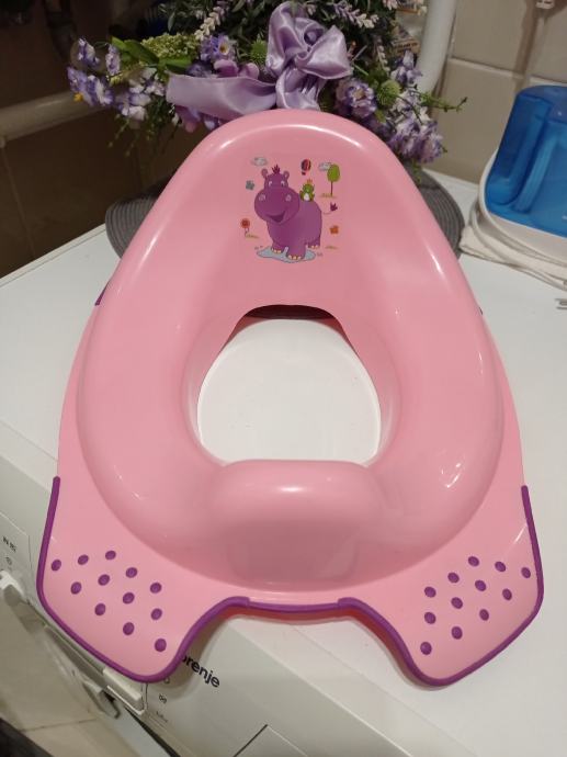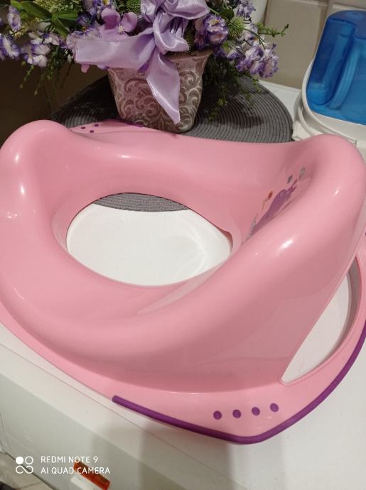 Prodajem potpuno očuvani, neoštećeni, čisti nastavak za WC-daske za bebe. Izrađen je od čvrste plastike, a gumom prekriveni dijelovi (ljubičasti) ne dozvoljavaju proklizavanje daske, pa je dijete koje sjedi na njoj sigurno.