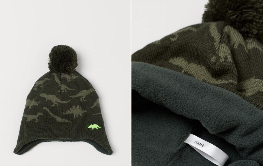 Zimska kapa za dečke, H&M, veličina 134 - 152 (8 - 12 godina), motiv dinosaura, topla, flisasto podstavljena, nova s etiketom