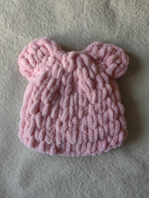 Kapica je topla, lagana i mekana, ima pleteni uzorak i slatki uši medvjediča