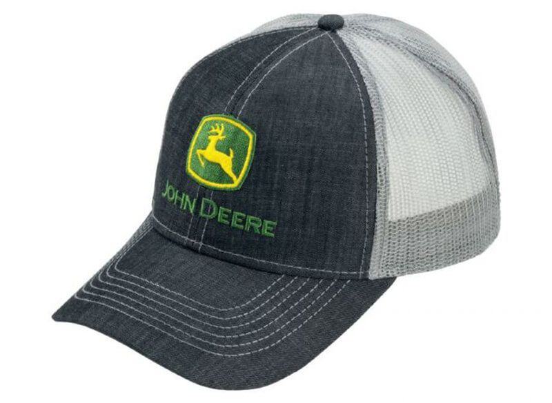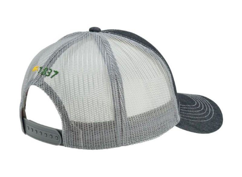 Dječja kapa od crnog chambray trapera sa sivom mrežastom pozadinom i podesivim kopčanjem.