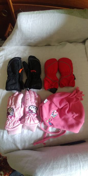 Roze, Hello Kitty, 4-6 g. Rukavice kao nove. Nepromočive. Tople, postavljene flisom, Cijena 2 EUR po komadu.