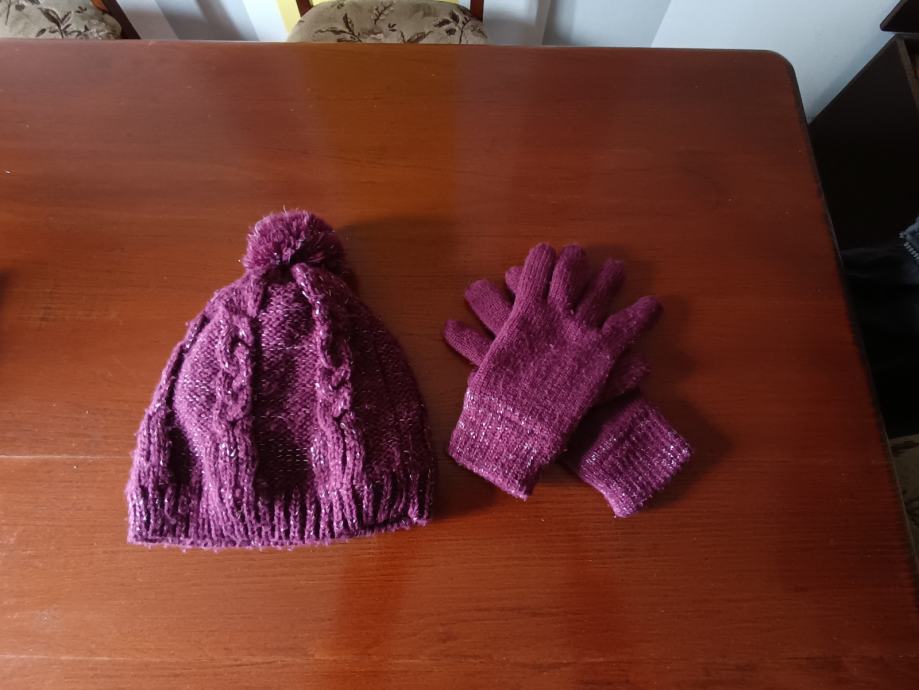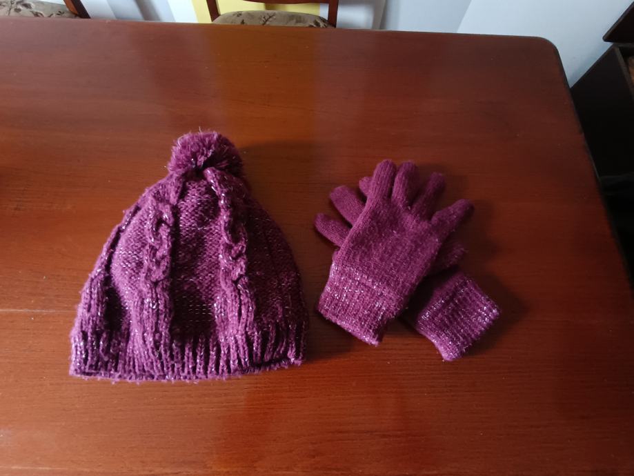 Komplet kapa i rukavice.Tople podstavljene,imaju utkane srebrne niti i uživo super izgledaju.Nošeno kratko.Dostava tisak...pošta ili osobni dolazak.