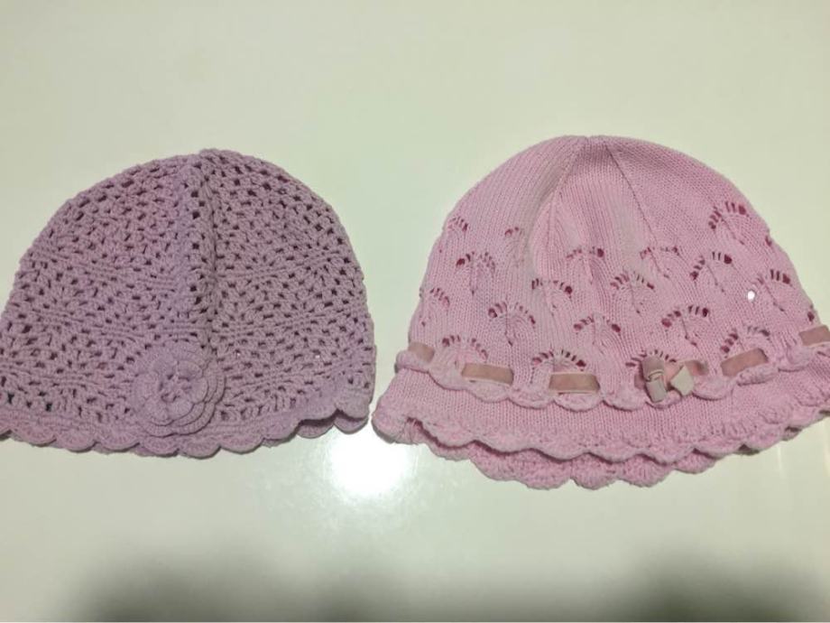 Peodaju se dvije lagane pamucne kapice za djevojcice. Lila kapica je Benetton, velicina 6-12 mjeseci, a roza kapica je H&M, velicina 12-24 mjeseca.