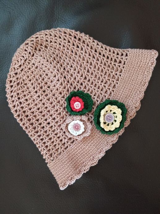 Ručno pletena kapa za curice ili manju glavu. Novo, boja roskasto-bež. Drugi šešir poklanjam.