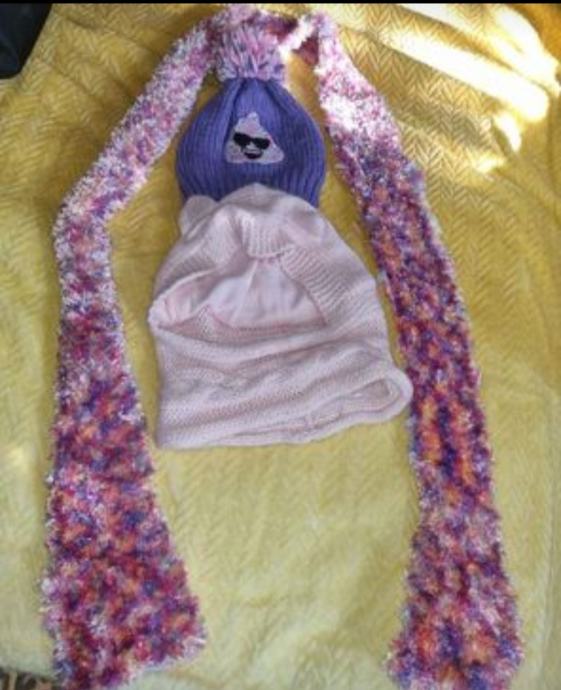 Prodajem nenošene kapice ljubičasta sa šljokicama na mjenjanje,roza koja se samo navuče na glavu sa šalom,rozo ljubicasti šal i sivi šal koji se samo navuče na glavu kao majica.Sve je za curu od 10 godina može za manju ili veću.Cijeli lot 10€