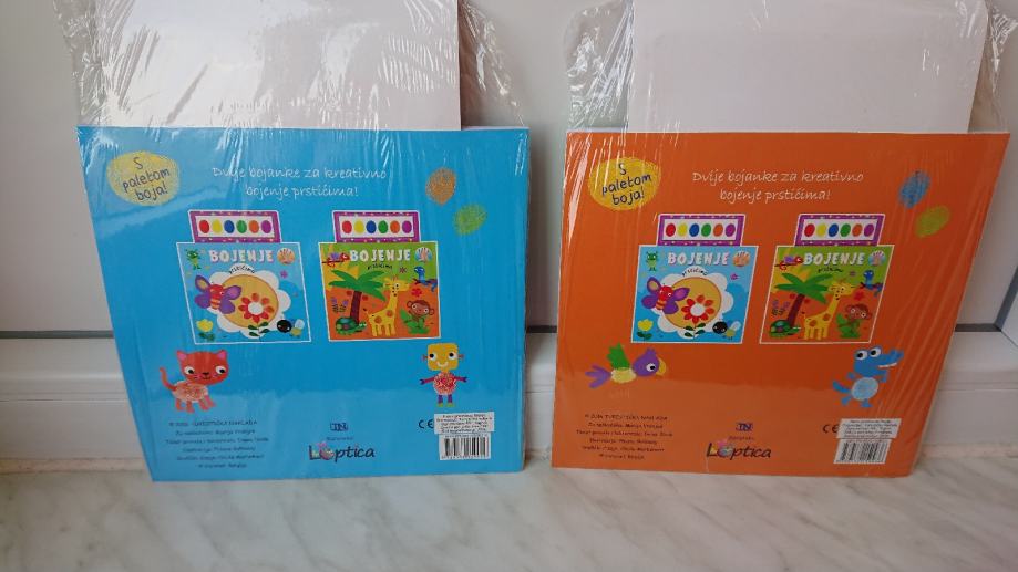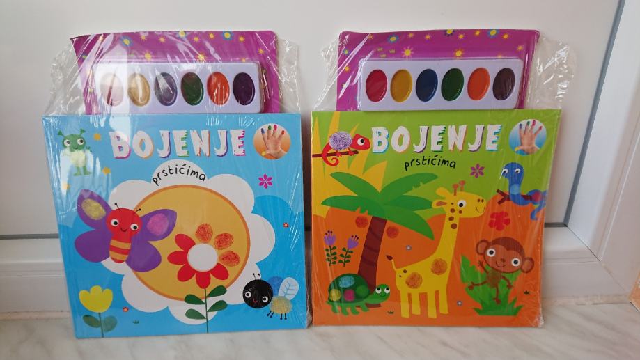 Bojenje prstićima, odlične bojanke za djecu, pune maštovitih slika koje se trebaju bojati, ukrasiti, završiti, jako puno zabave i jako puno slika u svakoj. Obje su sasvim nove.