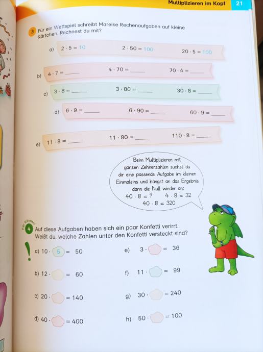 Odlični zadatci na 44. stranice radne bilježnice. Uz učenje matematike djeca će naučiti i osnove njemačkog jezika. Novo. Izdanje Profil Klett, Njemačka