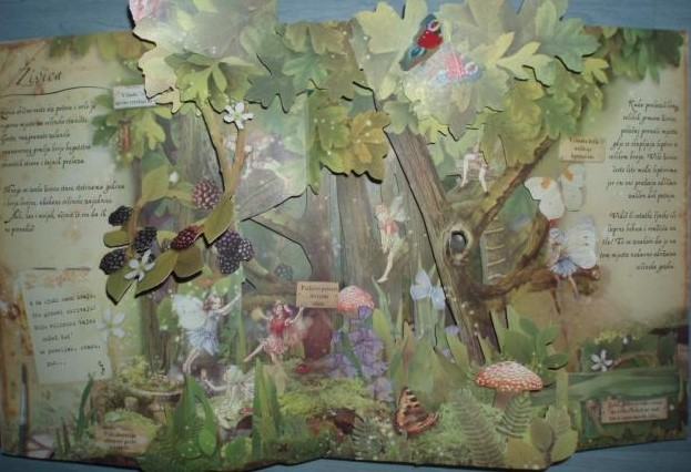 Na svakoj stranici čeka vas trodimenzionalni prikaz po jednog vilinskog staništa s malim stanarima koji nas uvijek iznova očaraju. Na umjetnički oslikanim dodatnim knjižicama, preklopima, omotnicama i papirnatim 'konstrukcijama' koje se otvaraju listanjem knjige pronaći ćete mnoštvo savjeta, detalja i boja pa čak i vilinsku prašinu.