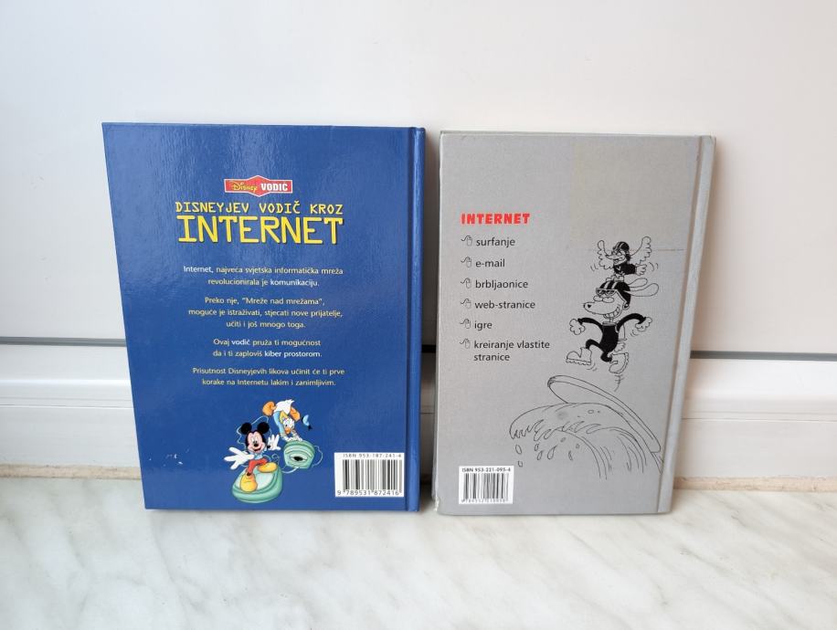 Knjiga Disneyev vodič kroz Internet i uz nju na poklon knjiga Internet, Lisa Hughes, obje su na hrvatskom jeziku. Sadržaj je uslikan.