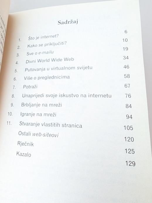 Osnove interneta. Što je internet, kako se priključiti; e mail; world wide web; pretraživanje interneta; skidanje softvera; forumi i brbljaonice; igranje na mreži; stvaranje vlastitih web stranica. Knjiga sadrži i adrese zanimljivih web siteova, rječnik pojmova i kazalo. Primjereno djeci osnovnoškolskog uzrasta.