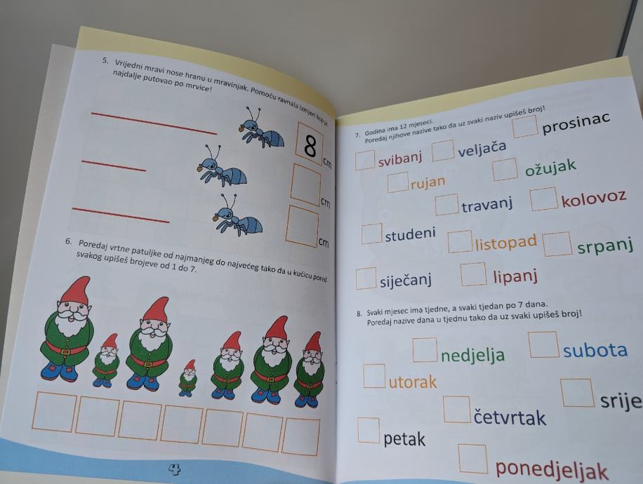 Vježbenica se fokusira na raznolike pedagoške ciljeve kako bi dijete u potpunosti pripremila za školu.