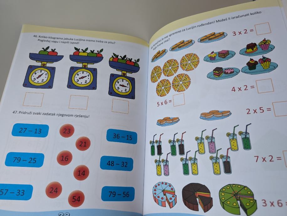 Vježbenica ima 37 stranica + rješenja svih zadataka.