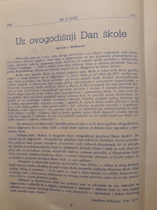 "MI O SEBI" 1961-1971 - list učenika Osnovne škole "Vežica" u Rijeci