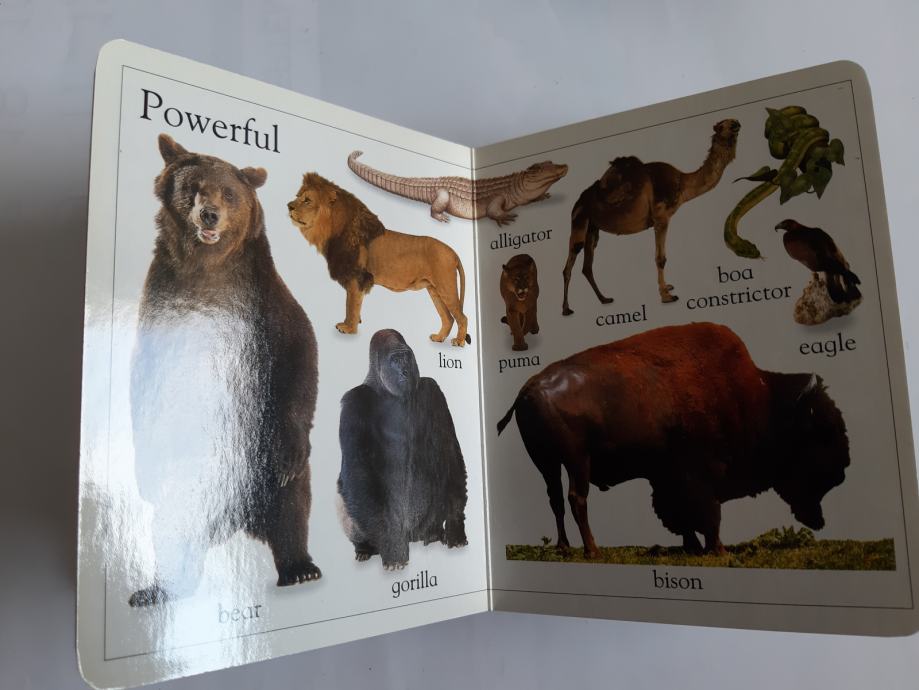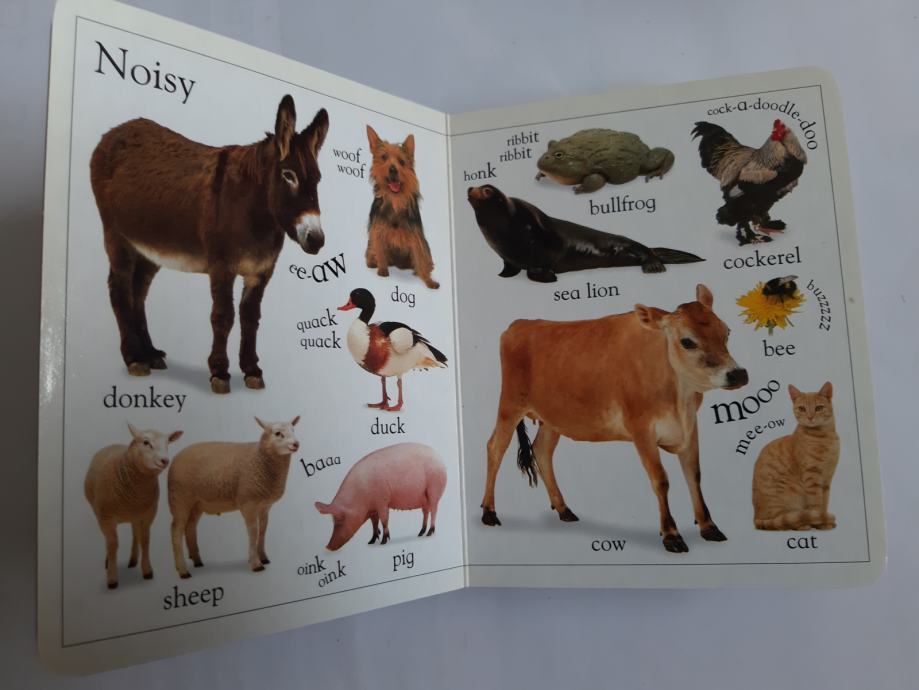 Čvrsta, zdepasta knjiga koja obiluje jasno označenim fotografijama ljupkih beba životinja, osmišljena da nauči mlade osnovnom vokabularu.