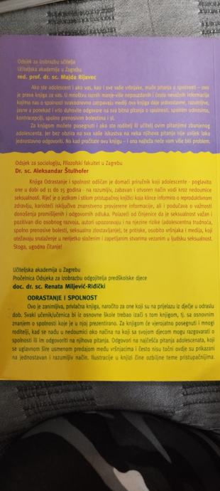 Knjiga namijenjena adolescentima,odlicno objasnjeni pojmovi poput spolno prenosivih bolesti,reproduktivnih organa itd
