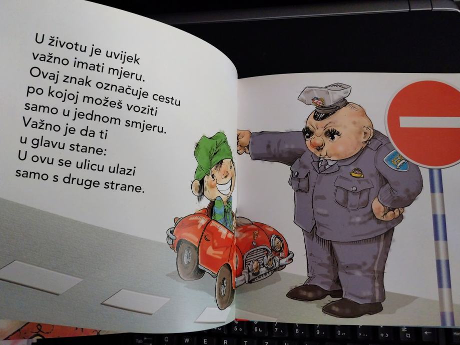 ".....Kako će dijete sigurno prijeći cestu, kako se uključiti u promet? Naravno, treba naučiti sve o prometnim znacima, dobrim prijateljima u prometu. Slikovnica o 11prometnih znakova i semaforu predstavljenih duhovitim stihovima...."