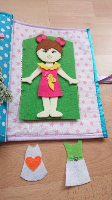 Djeca uče boje (spajanje balona gumbićima sa njihovom bojom), oblike (spajaju se pomoću čička), voće i povrće (sadnja povrća u vrtu, stavljanje u košaru, ili pak drvo s jabukama / kruškama i spremanje u košaru - spajanje malim drukerima), pranje odjeće u veš mašini, stavljanje u košaru i nošenje na sušenje (između dva drveta, sa kvačicama), puzzle ovca koje se spajaju pomoću čička i brojanje do 6 sa raznim oblicima, ukrašavanje kose sa špangicama i gumicama, ili pletenje pletenice i vezanje repa, oblačenje djevojčice sa raznom robicom koja se nalazi u ormaru - haljine, hlače, majica (spajanje malim drukerima).