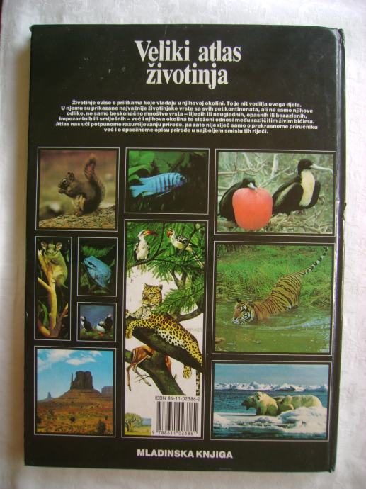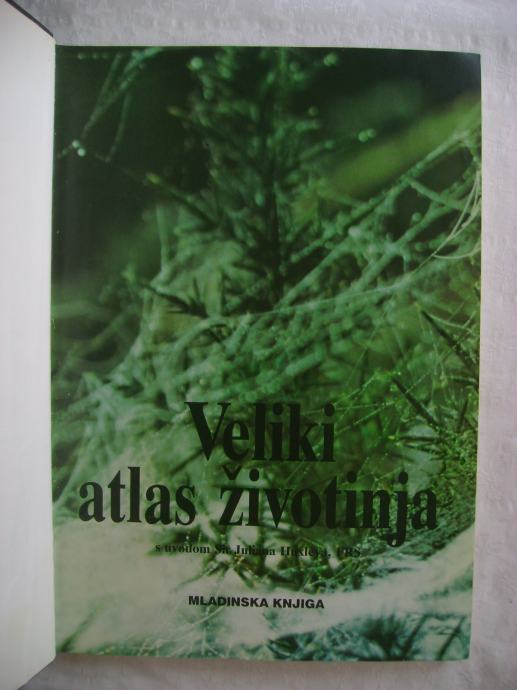 Veliki atlas životinja; Jedinstven prikaz života na Zemlji - uvod Sir Juliana Huxleya, izdavač Mladinska knjiga, Ljubljana-Zagreb 1990. godine, 24 x 34 cm, tvrdi uvez, 223 stranice, bogato ilustrirano.