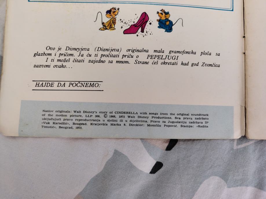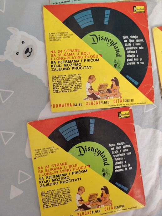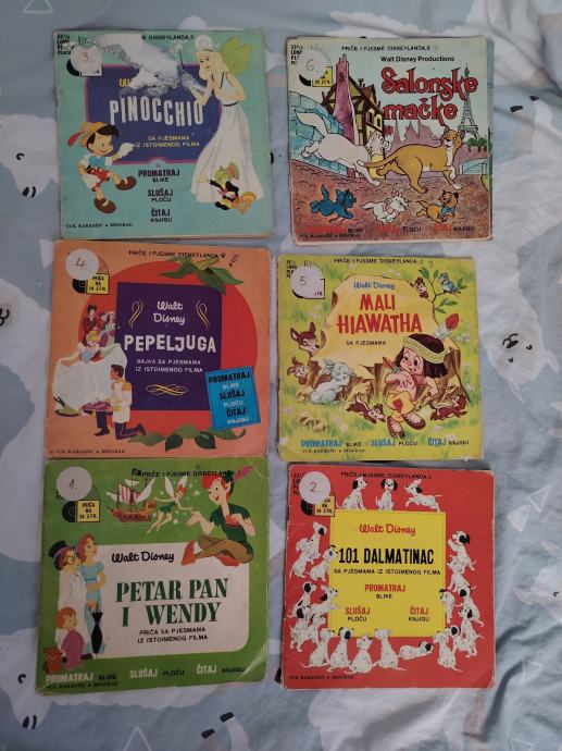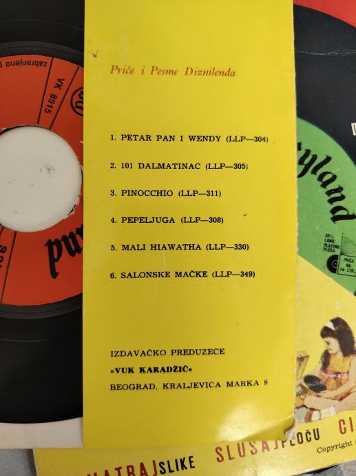 kolekcije pod nazivom "Priče i pjesme Disneylanda". Izdala ih je nakladnička kuća Vuk Karadžić u Jugoslaviji. Svaka slikovnica sadrži priču na 24 stranice i prateću singl gramofonsku ploču (long play 33 1/3) s pjesmama i pričom iz istoimenog Disneyevog filma.