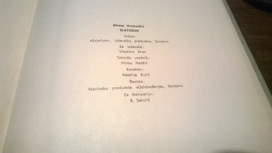ZLATORUN AHMET HROMADŽIĆ SVJETLOST SARAJEVO 1966.