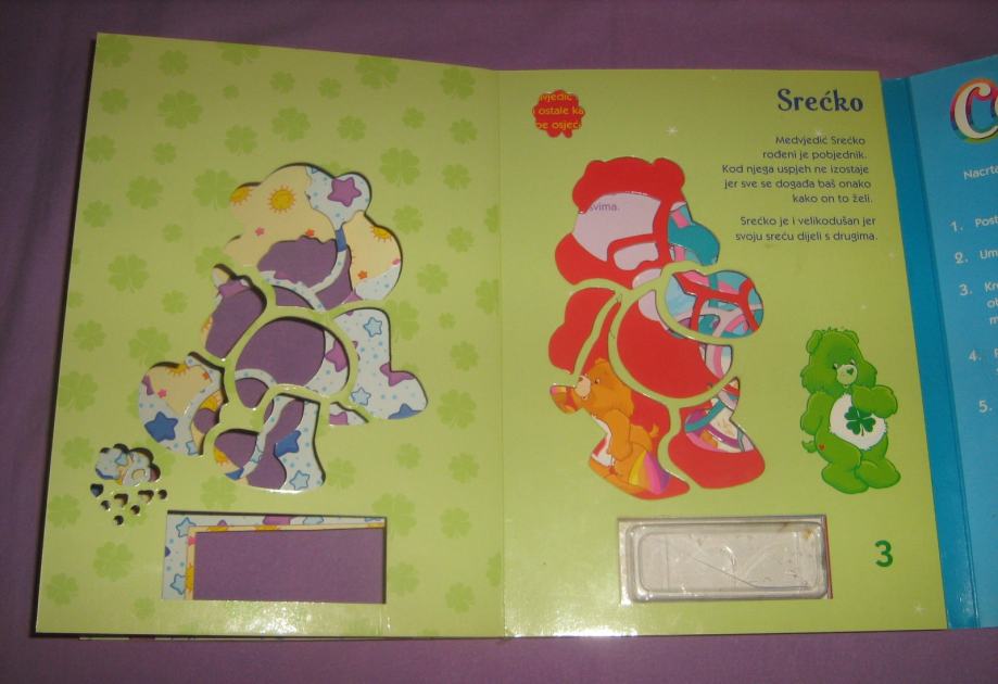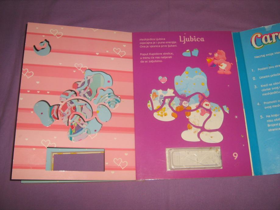 tvrde korice, korišten, 10 predložaka (također tvrdih stranica), nažalost nema više naljepnica i 4 bojice koje su išle uz crtanku .