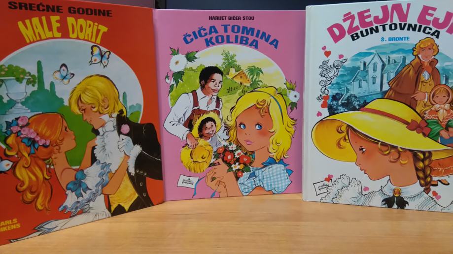 Prodajem nekorištene dječje knjige Čiča Tomina koliba, Buntovnica i Srećne godine male Dorit. Knjige imaju posvetu. Tvrdi uvez, Izdanje Oslobođenje Sarajevo, 1990.