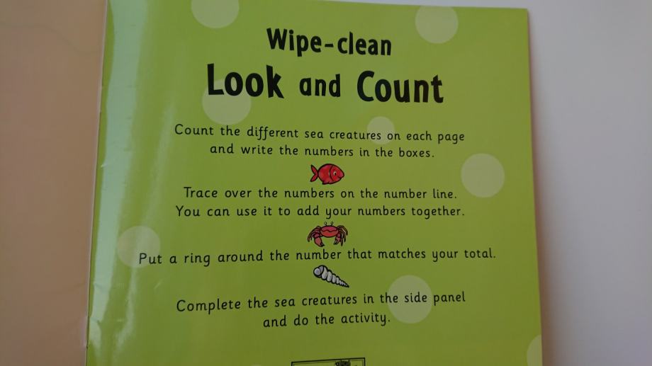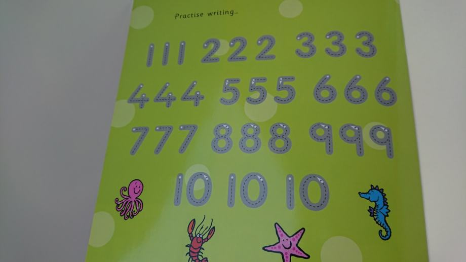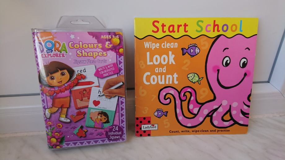 Uz Dora istražuje set, poklanjamo i knjigu za učenje brojeva na engleskom, koji se također mogu učiti pisati, a mogu se učiti i crtati razne morske životinje (i brojevi i životinje su iscrtani točkicama za lakše učenje), a sve se također može obrisati i koristiti više puta ukoliko se koriste bilo koji perivi flomasteri (samo ne vodootporni).